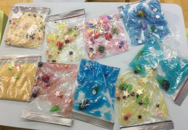 Parents et enfants pourront toucher et manipuler des sacs remplis de trésors.